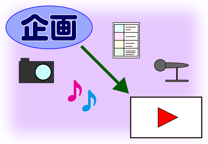 撮影はもちろん企画・絵コンテ作成から音声入力・オープニング画面作成・バックミュージック挿入・効果音挿入・トランジション(場面切換効果)挿入までを一貫して請け負います。