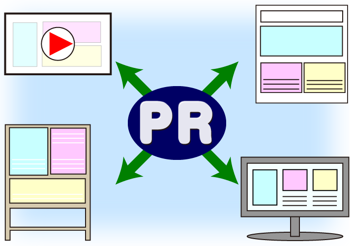 1つの情報を印刷物やホームページ、看板、動画など様々な形状に整形して提供。それぞれを相互補完させることで発信力強化に貢献しています。