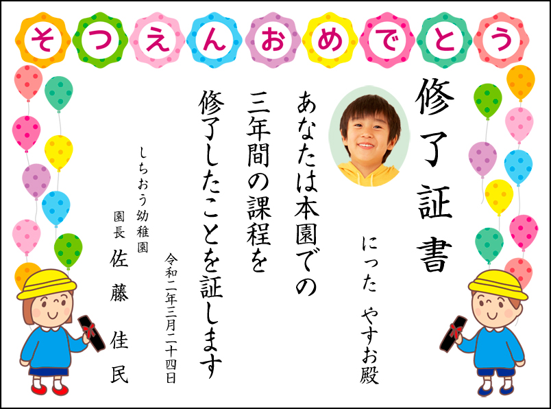 園児の卒園証書